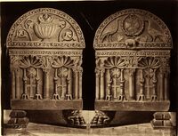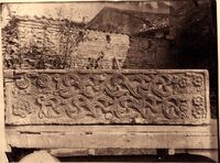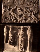 Ravenna : frammento d'arco di un ciborio e frammento di sepolcro antico nel museo