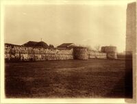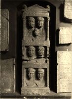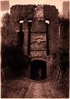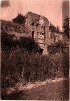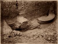 Ravenna : rudero della cornice di fianco alla Cappella di destra a Classe Fuori e rudero del pilastro d’angolo ed imposta del grembiule