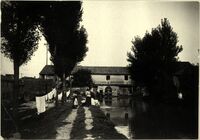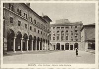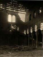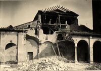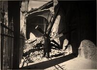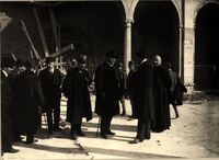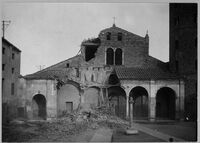 Ravenna 20 Febbraio 1916 : Corrado Ricci fa un sopralluogo alla Basilica di S. Apollinare Nuovo dopo il bombardamento. Si riconoscono oltre a Ricci, Muratori e Gerola