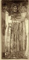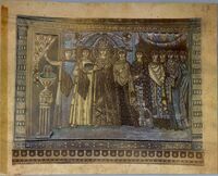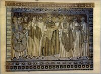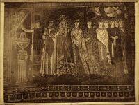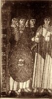 Ravenna : Basilica di S. Vitale : particolare del mosaico di Giustiniano e il suo seguito