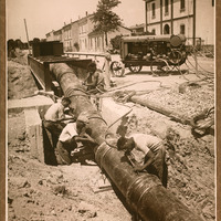 Condotta addutrice da Torre Pedrera a Ravenna. Ribattitura del piombo delle giunzioni con martelli pneumatici