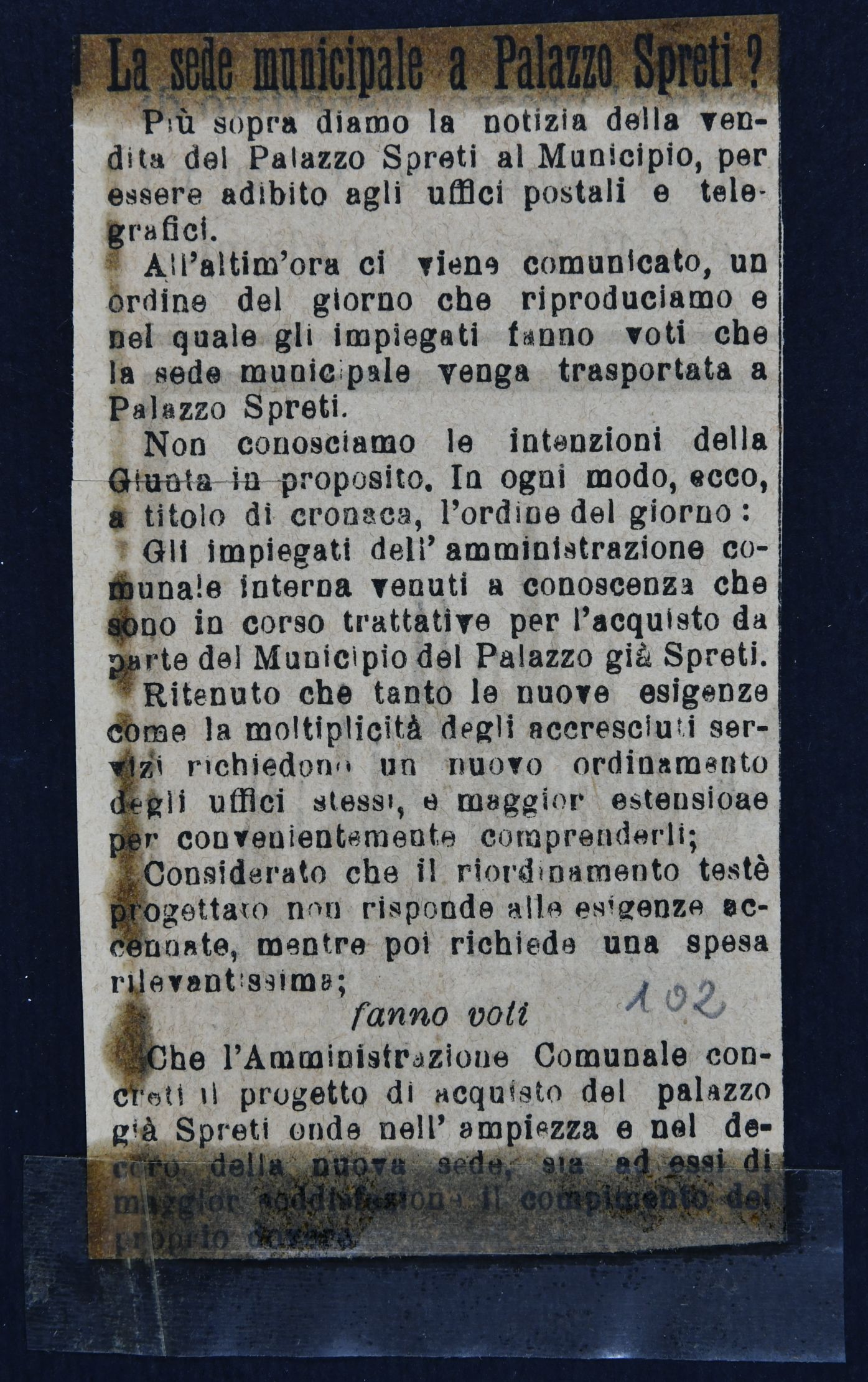 Notizie relative alla vendita e all'acquisto di Palazzo Spreti |