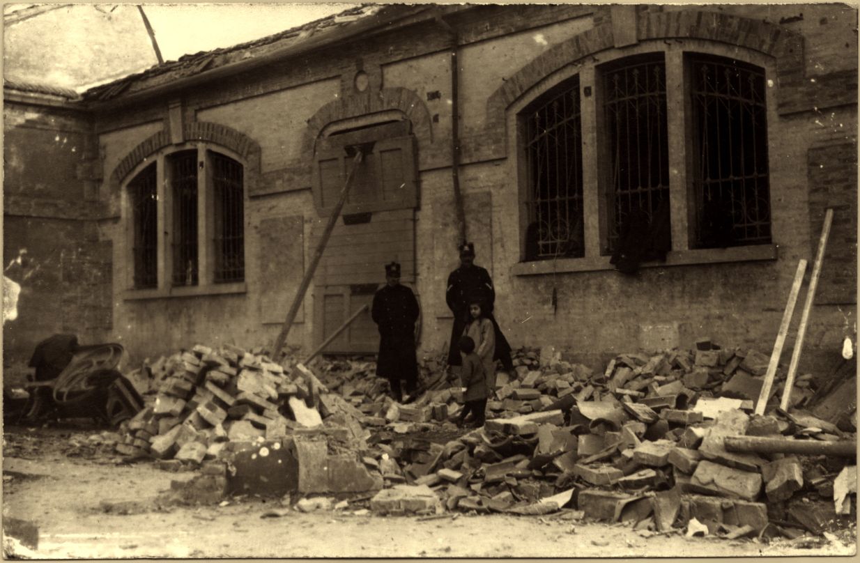 Ravenna : danni causati dallla caduta di una bomba sul calzaturificio nel febbraio 1916