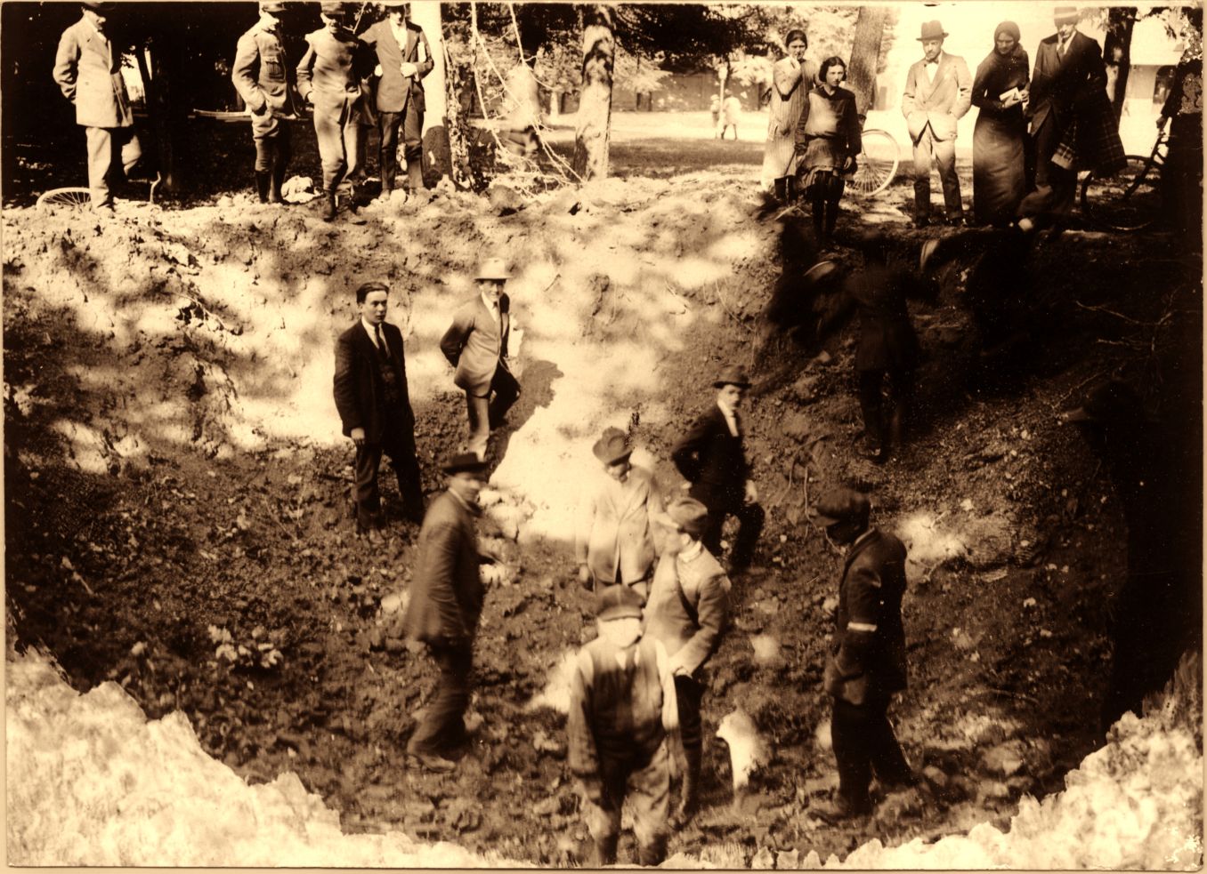 Ravenna, 3 maggio 1916, 2. incursione aerea austriaca, escavazione prodotta da una granata nei pressi del Giardino pubblico