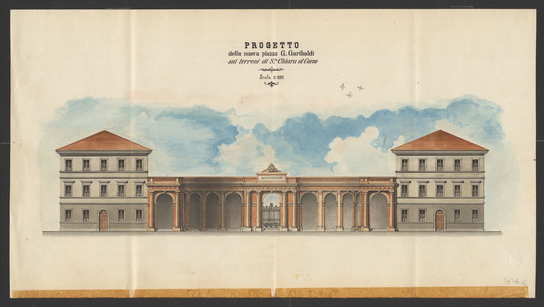 Pianta della nuova piazza G. Garibaldi sui terreni di S. Chiara al Corso |