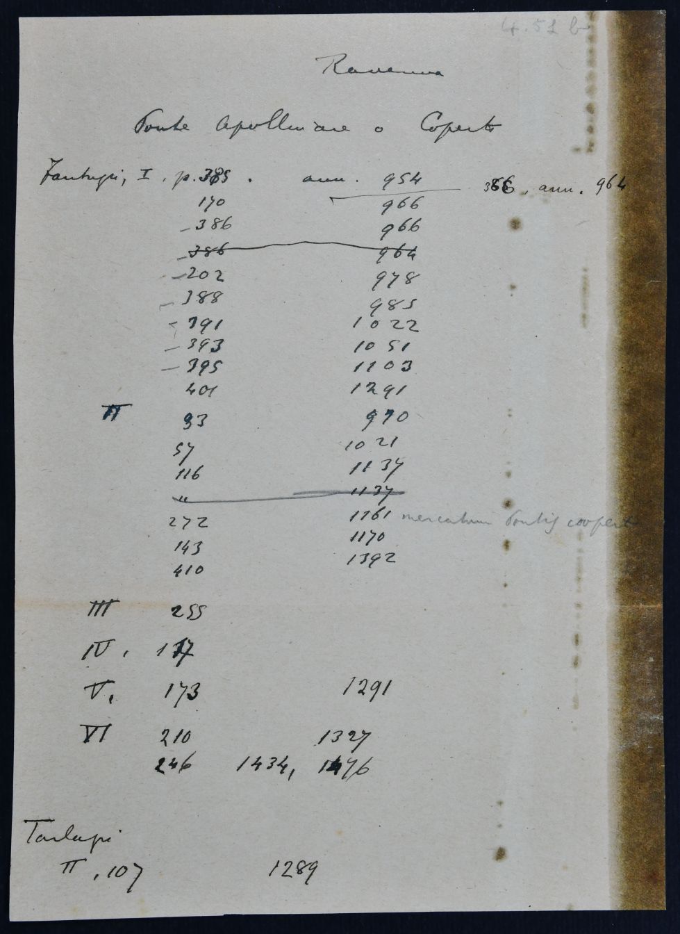 Nota manoscritta con riferimenti all'opera "Monumenti ravennati de' secoli di mezzo per la maggior parte inediti" di Marco Fantuzzi, tomi I-VI (Venezia, 1801-1804)