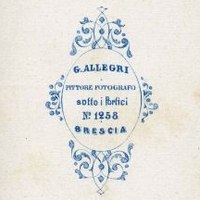 Sul verso del supporto, informazioni dello studio fotografico a stampa: "G. Allegri Pittore Fotografo, sotto i portici n°1258, Brescia"