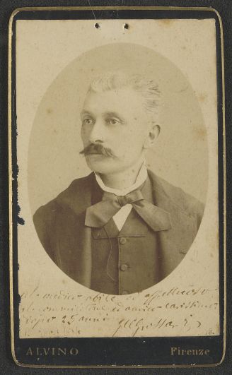 Informazioni a stampa sullo studio fotografico sul verso del supporto: "Alvino & C., Via Nazionale 1° Terreno, Firenze"