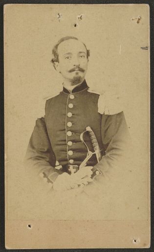 Ritratto a busto intero di uomo in divisa con guanti in mano