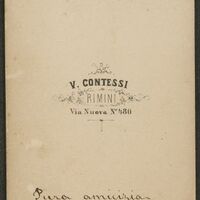 Informazioni sullo studio fotografico a stampa sul verso del supporto: "V. Contessi, Rimini, Via Nuova N° 480"