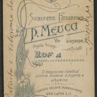 Informazioni sullo studio fotografico: "Stabilimento Fotografico P. Meucci, Via S. Giuseppe 2, Roma"
