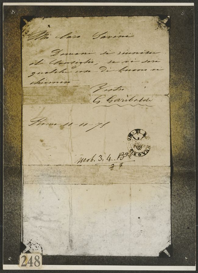 Fotografia di lettera autografa di Giuseppe Garibaldi a Giuseppe Savini (Roma, 11 novembre 1873)