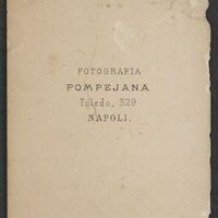 Sul verso del supporto, informazioni a stampa sullo studio fotografico: "Fotografia Pompejana, Toledo, 329, Napoli"
