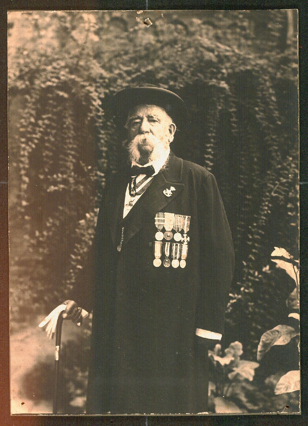 Domenico Nigrisoli con otto medaglie appuntate al petto |
