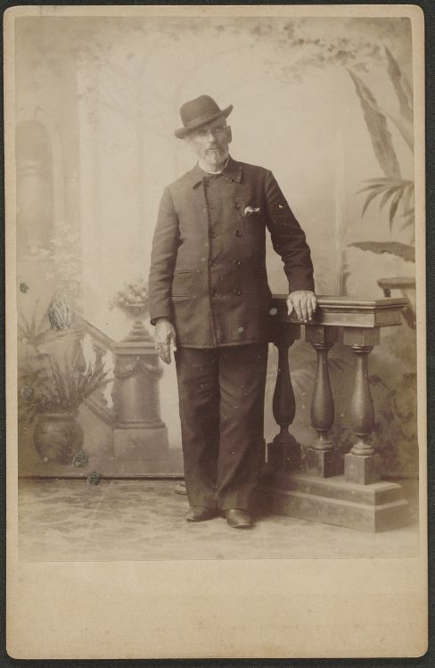 Ritratto di Manuel Penco a figura intera, con cappello e giacca a doppio petto