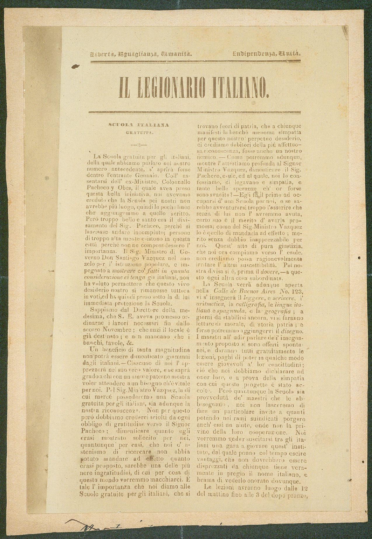 Riproduzione fotografica di articolo sulla gratuità della scuola dal periodico “Il Legionario Italiano”