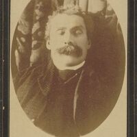 Ritratto a mezzobusto di uomo con baffi e con occhi chiusi |