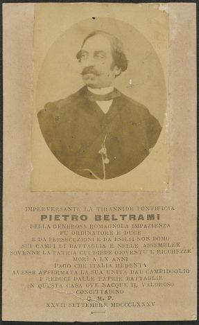 A stampa sul recto del supporto, necrologio in onore di Pietro Beltrami, datato 27 Settembre 1885