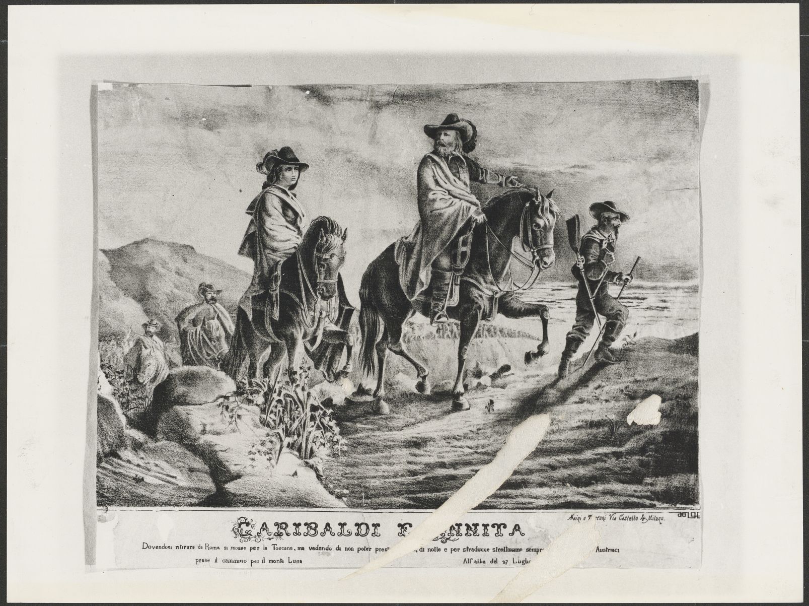 Fotografia di stampa rappresentante Anita e Giuseppe Garibaldi in fuga da Roma