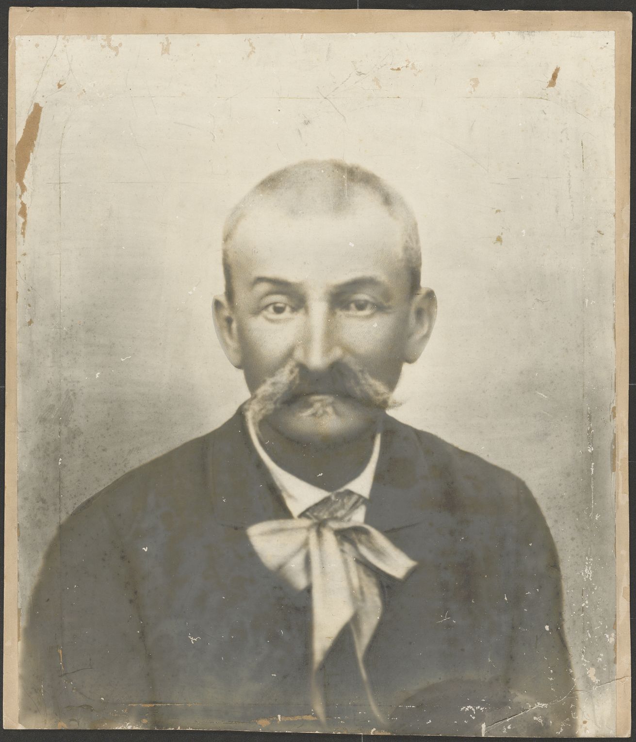 Ritratto a mezzobusto di uomo con cravattino e baffi