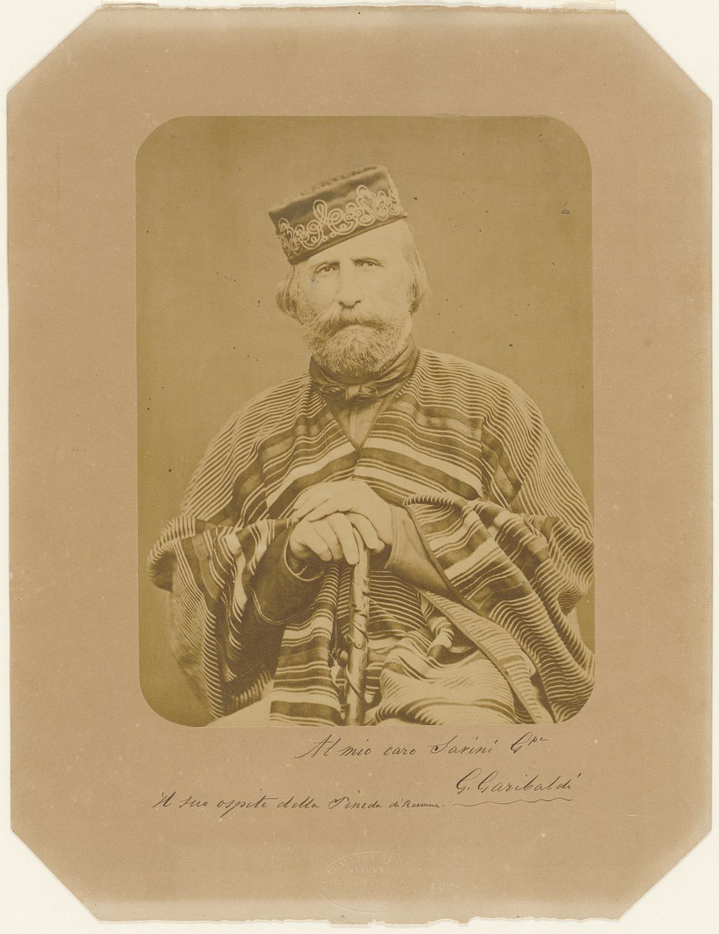Dedica autografa manoscritta sul recto del supporto: “Al mio caro Savini G. Il suo ospite della Pineda di Ravenna, G. Garibaldi”
