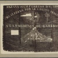 Vessillo riportante la scritta “Hazana del 8 Febrero de 1846. Realizada por la legion Italiana a las ordenes de Garibaldi” |