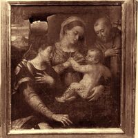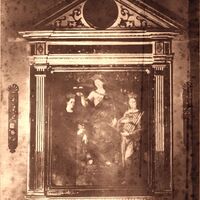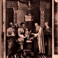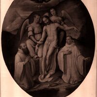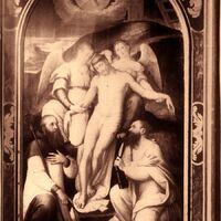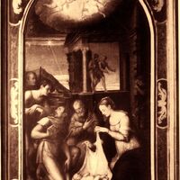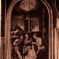 Dieci scomparti con varie raffigurazioni di angeli musicanti, angeli cantori, angeli con cornucopia e ceste e vasi con fiori, angeli con cartigli, angelo in lotta col demonio |