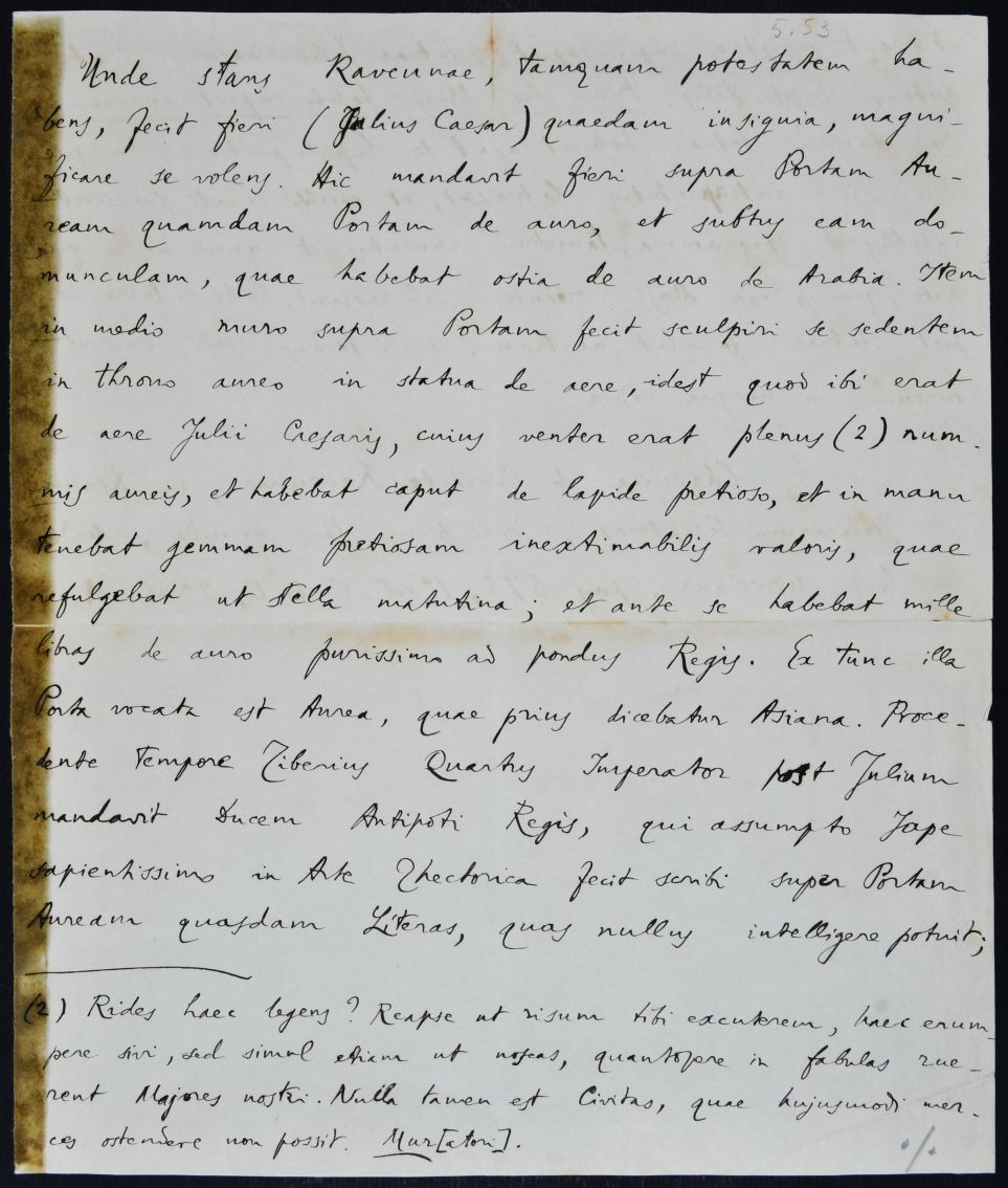 Nota manoscritta del "Chronica de Civitate Ravennae" in "Rerum Italicarum Scriptores" , MDCCXXV, p. 575, 1° col. C, D, E, 2° col. A