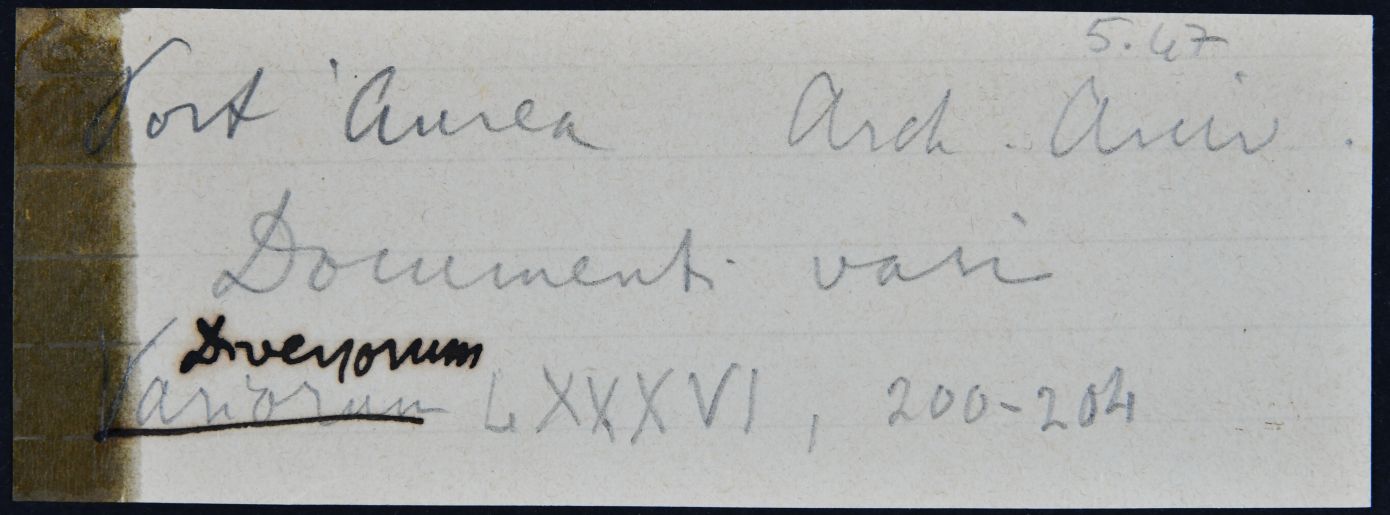 Nota manoscritta con rimando ad "Archivio A. Documenti vari, LXXXVI, pp. 200-204