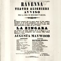 Locandina teatrale de La zingara del 9 giugno 1852 Autore Still Image