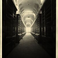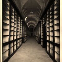 Biblioteca Classense : scaffalatura in legno corridoio collane Autore Still Image