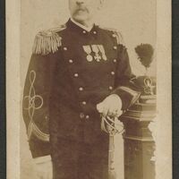 Giovanni Pasolini ritratto in abiti da soldato con tre medaglie appuntate sul petto |