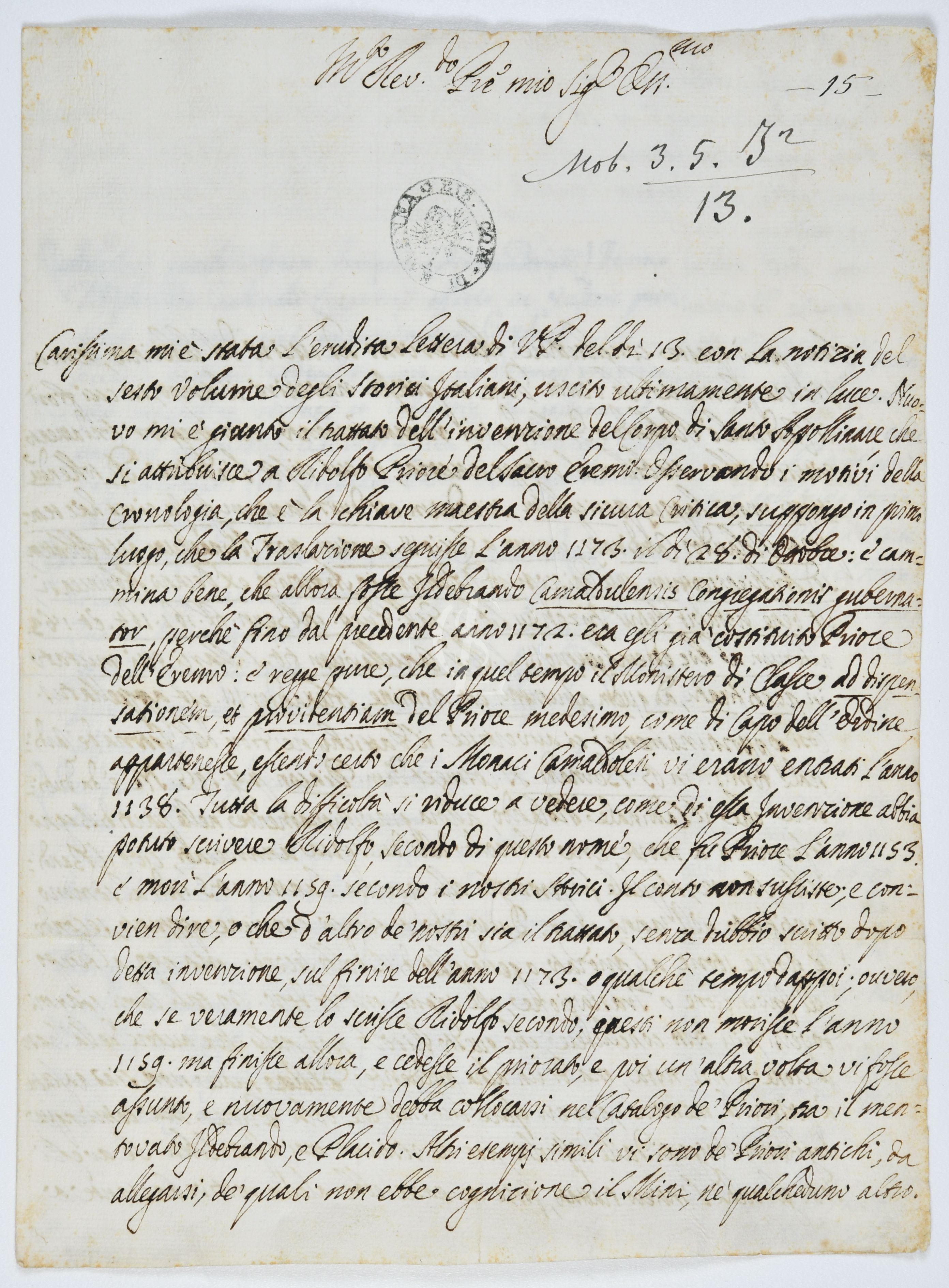 Epistolario Canneti Fiacchi. Mob. 3. 5 I2 4-27 |