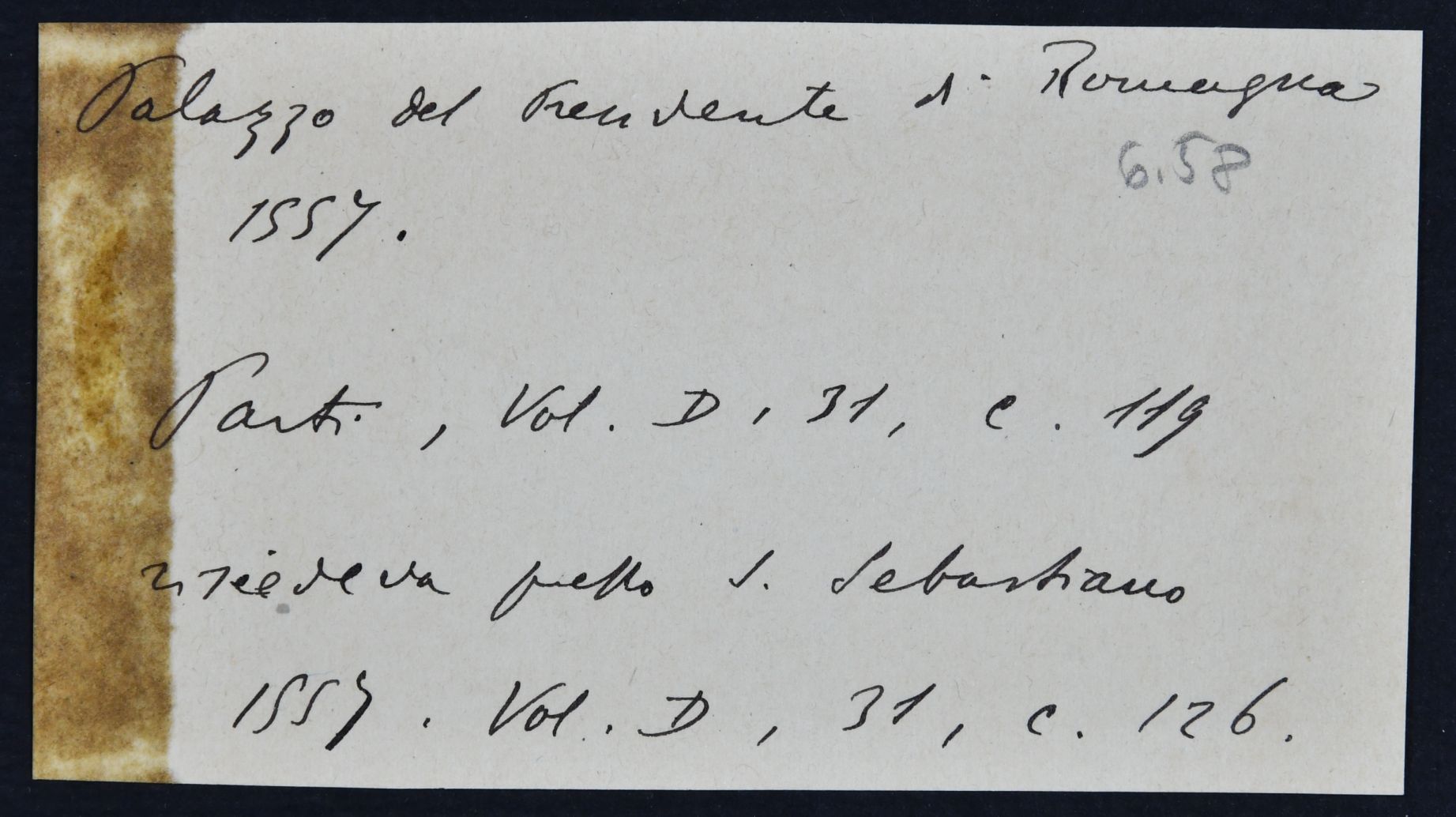 Palazzo del cardinal legato. Palazzo della Tesoreria di Romagna. Appunti manoscritti |