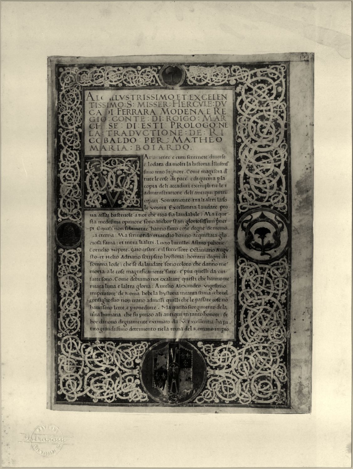 Biblioteca Classense : Prologo della traductione de Ricobaldo per Matheo Maria Boiardo, 1. c.