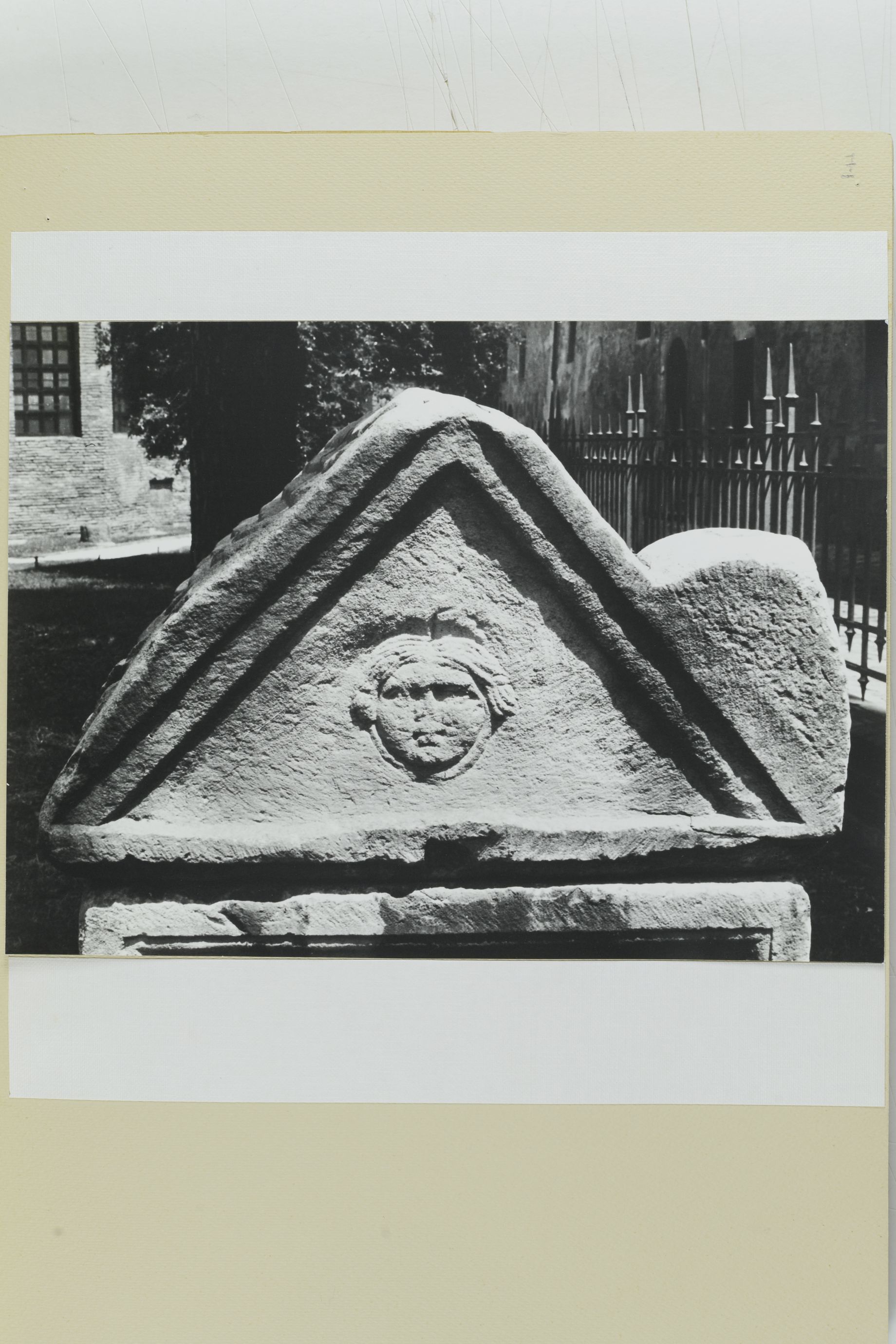 San Vitale - Parte superiore di un sarcofago in pietra di forma triangolare con bassorilievo di volto maschile