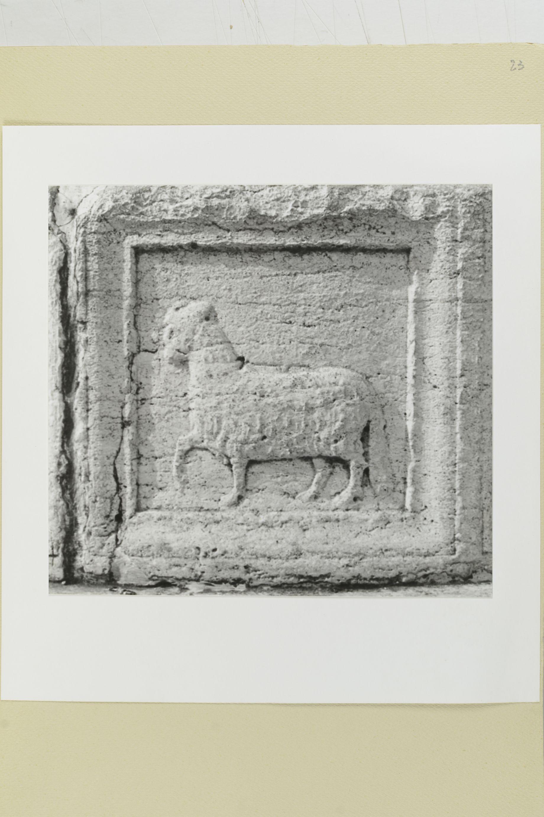 Piazza del Popolo – Ariete. Dettaglio bassorilievo della colonna nord.
