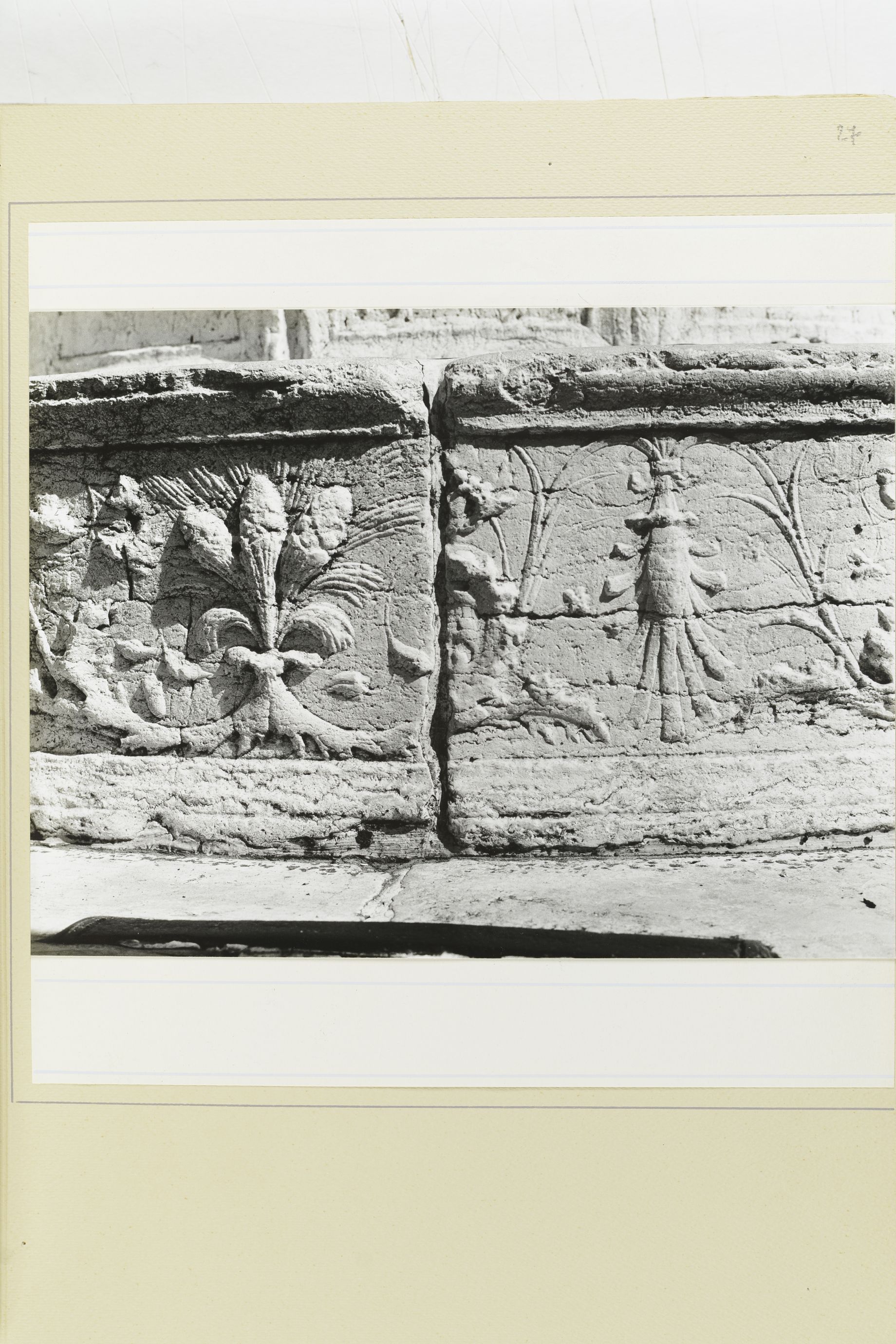 Piazza del Popolo –Dettaglio bassorilievo decorazione floreale della colonna nord.