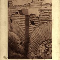 Piedritto della luna destra, con archivolto, avanzi dell'arco di scarico, visti dall'interno della Basilica di S. Vitale a Ravenna Parole chiave Still Image