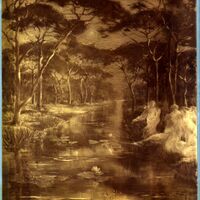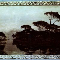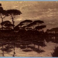 Tramonto in pineta di Gerolamo Cainati : quadro ad olio (venduto a New York) Parole chiave Still Image