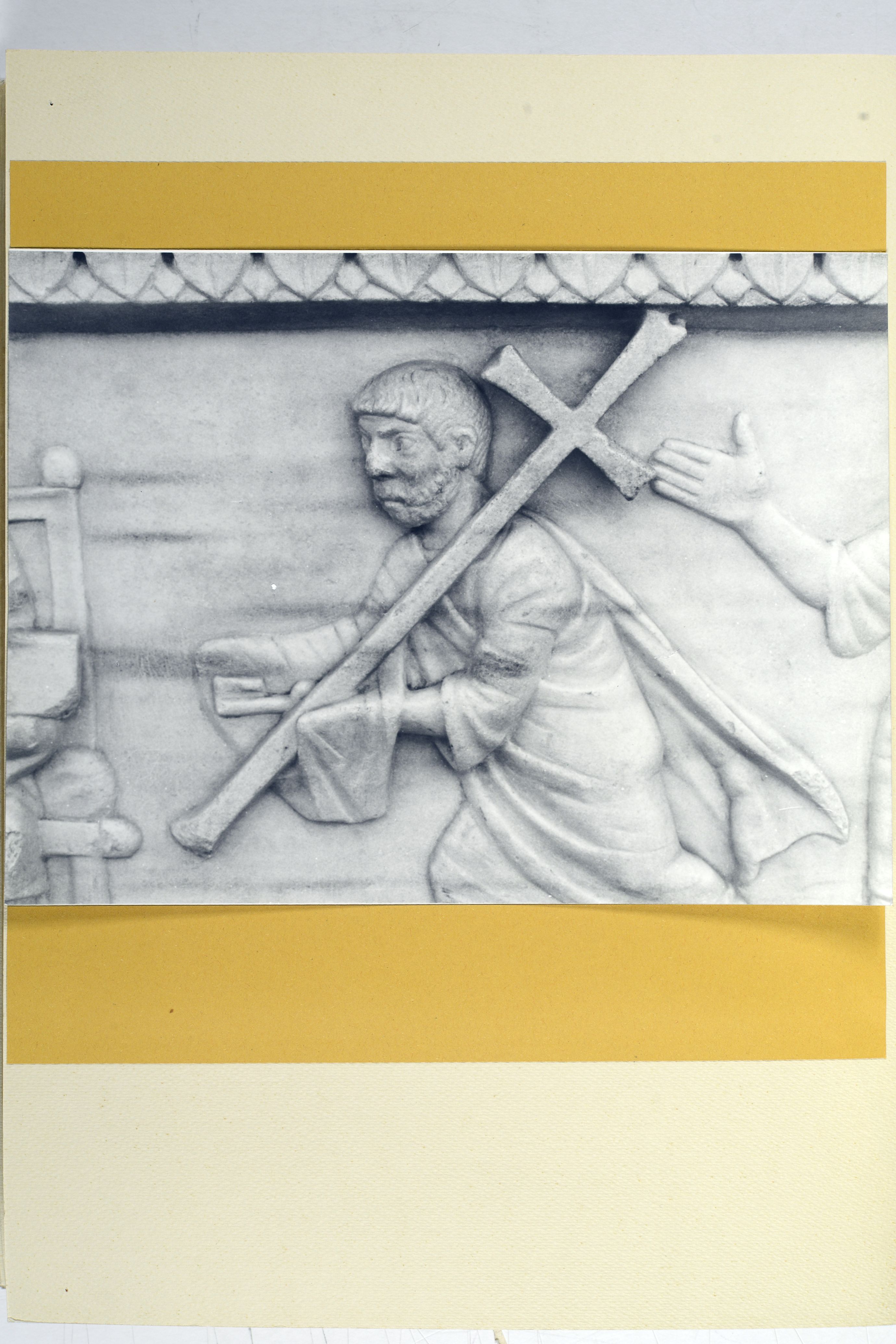 Sant’Apollinare in Classe – Interno. Particolare laterale del sarcofago in marmo decorato.