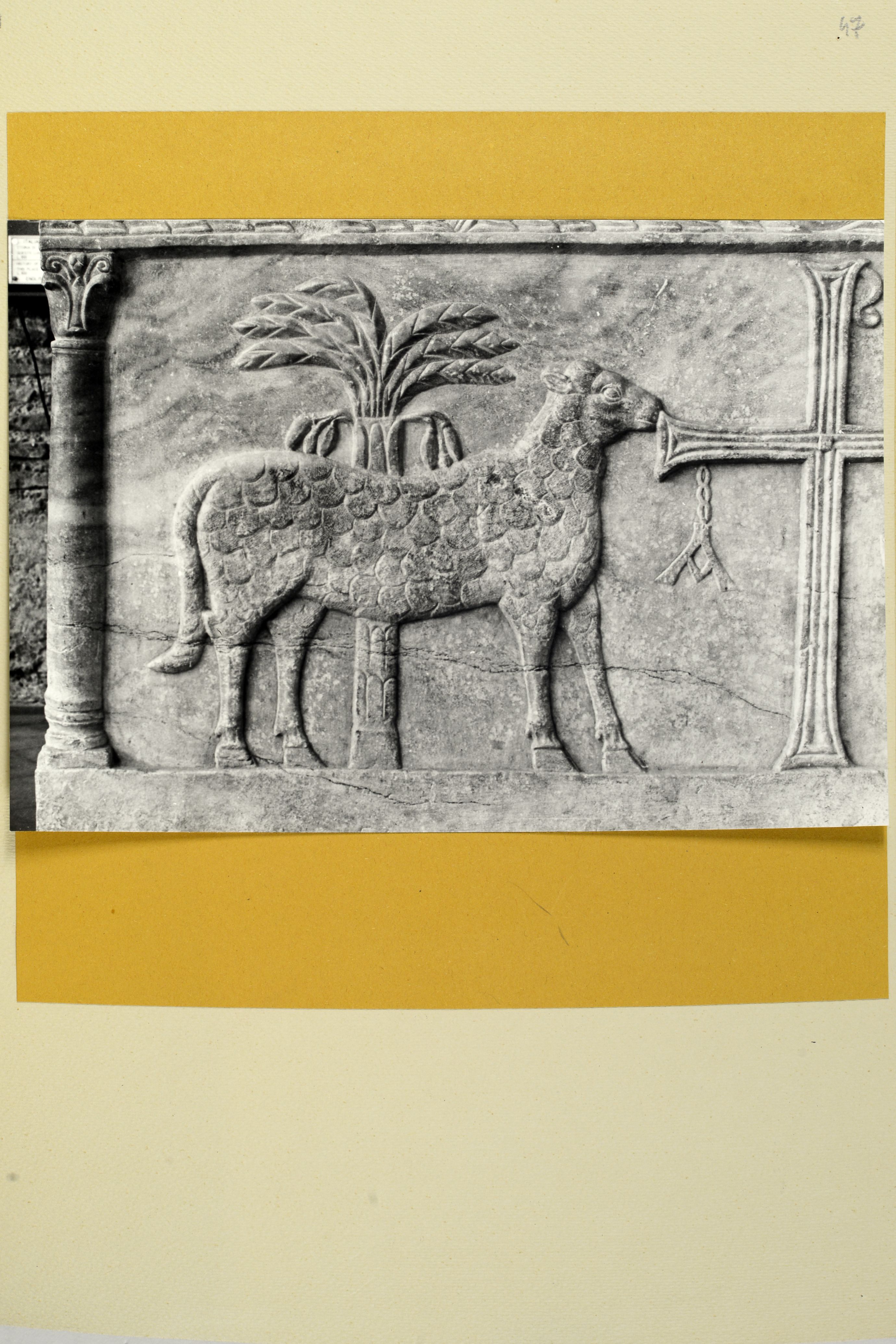 Sant’Apollinare in Classe – Interno. Particolare del sarcofago in marmo decorato.