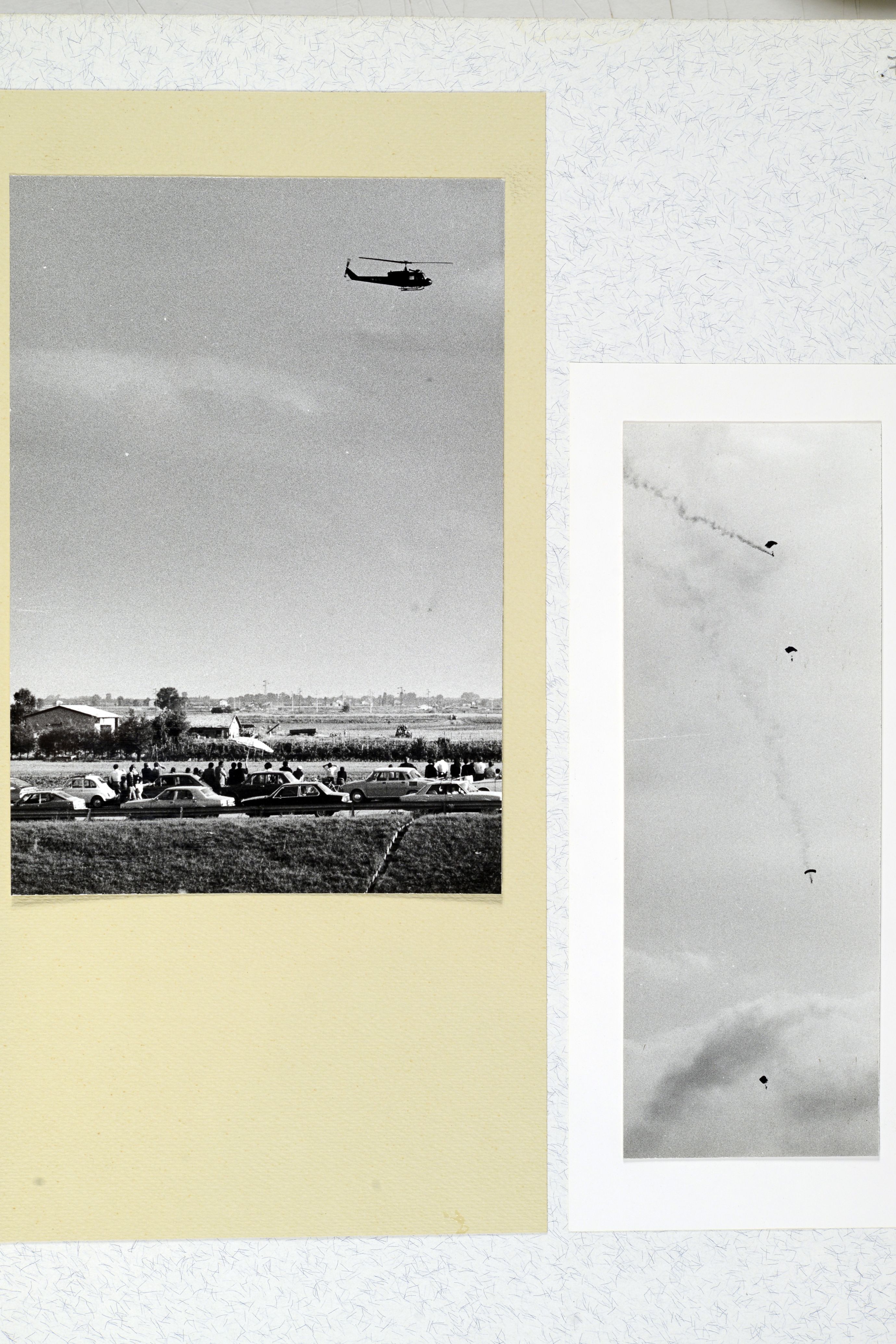 Acrobazie Aeree – Elicottero in volo e persone in strada / Paracadutisti