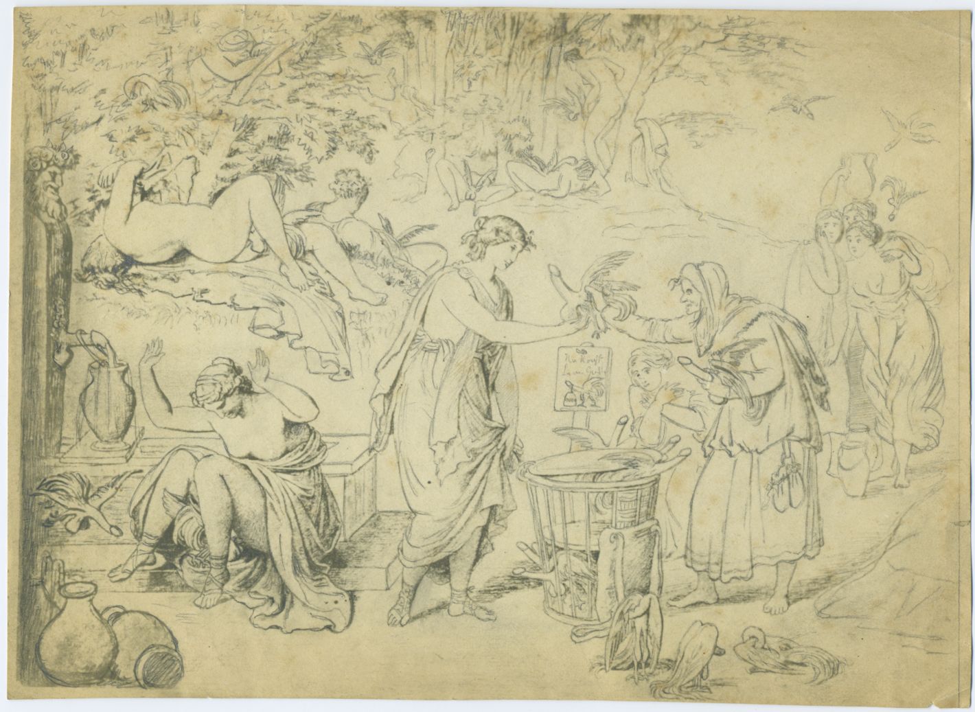 Parodia dell’affresco pompeiano “La venditrice di Amori”