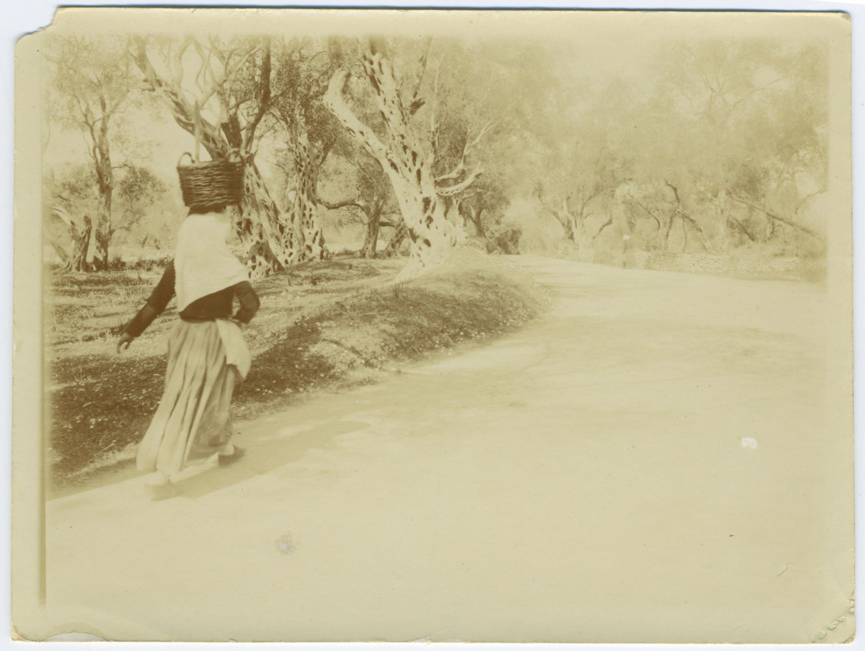 Paesaggio con ulivi e persone che camminano