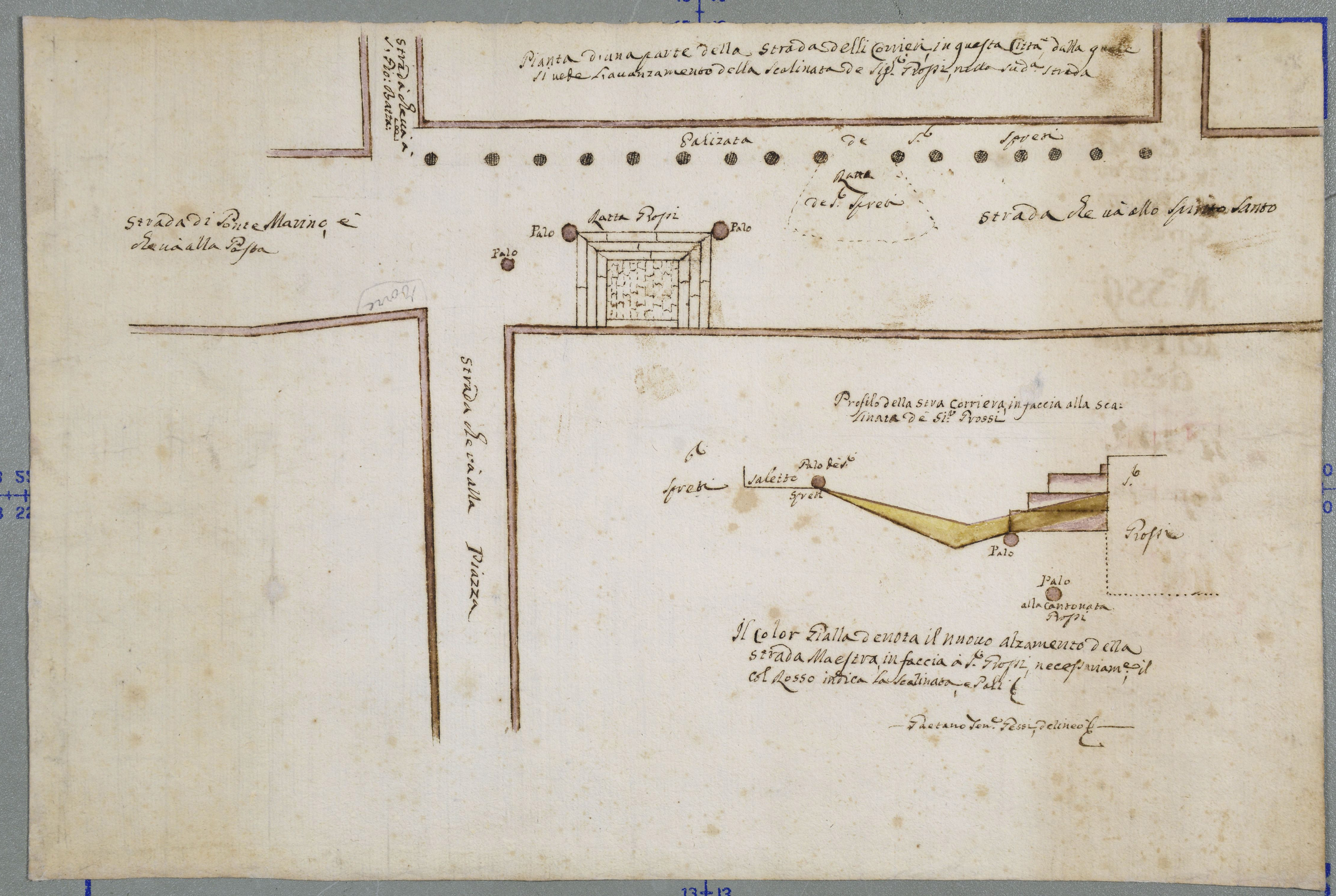 Strada dei corrieri (ora Paolo Costa) in città ove è il palazzo Spreti, la fila dei pali, e le rampe Grossi e Spreti