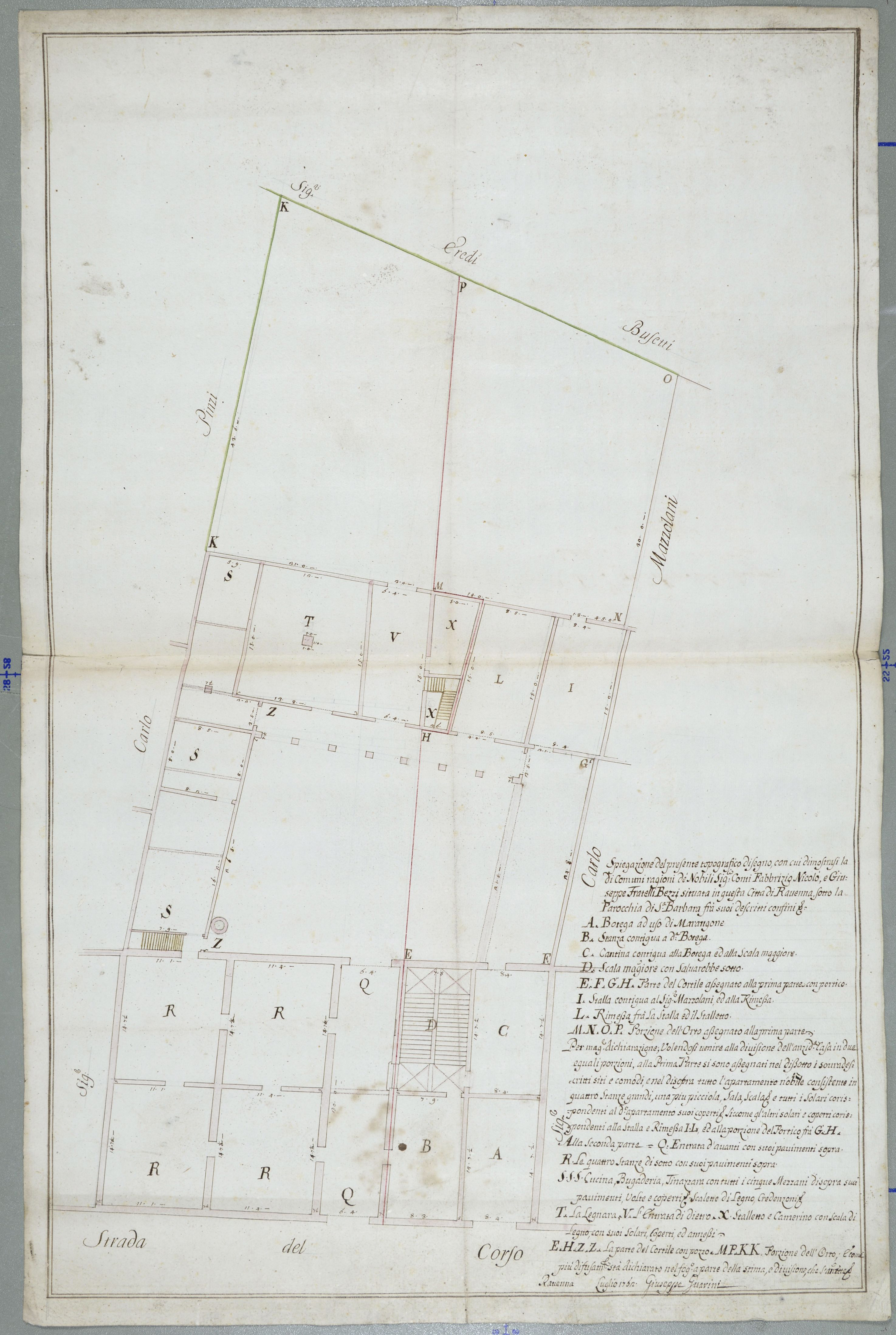 Pianta della casa dei conti Bezzi sul Corso in angolo con la strada Alberoni