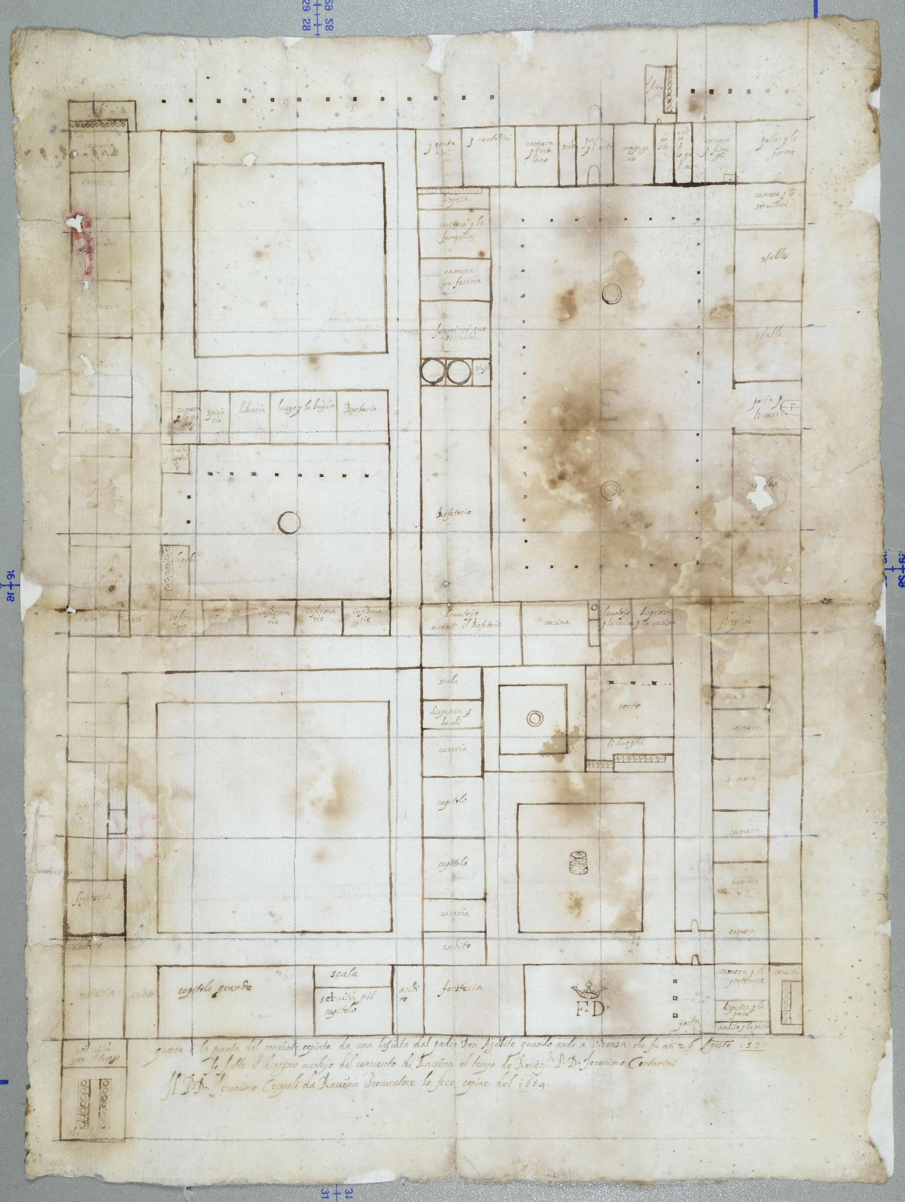 Questa � la pianta del convento copiata da una lasiata dal padre don Agabito quando and� a Vicenza che fu ad� 26 Agosto 1537 fu fatto il disegno vecchio del convento di Ravenna al tempo de' reverendo P.D. Ieronimo Contarini. Il P.D. Ieronimo Crespoli da Ravenna Procuratore lo fece copiare del 1614�; F. D