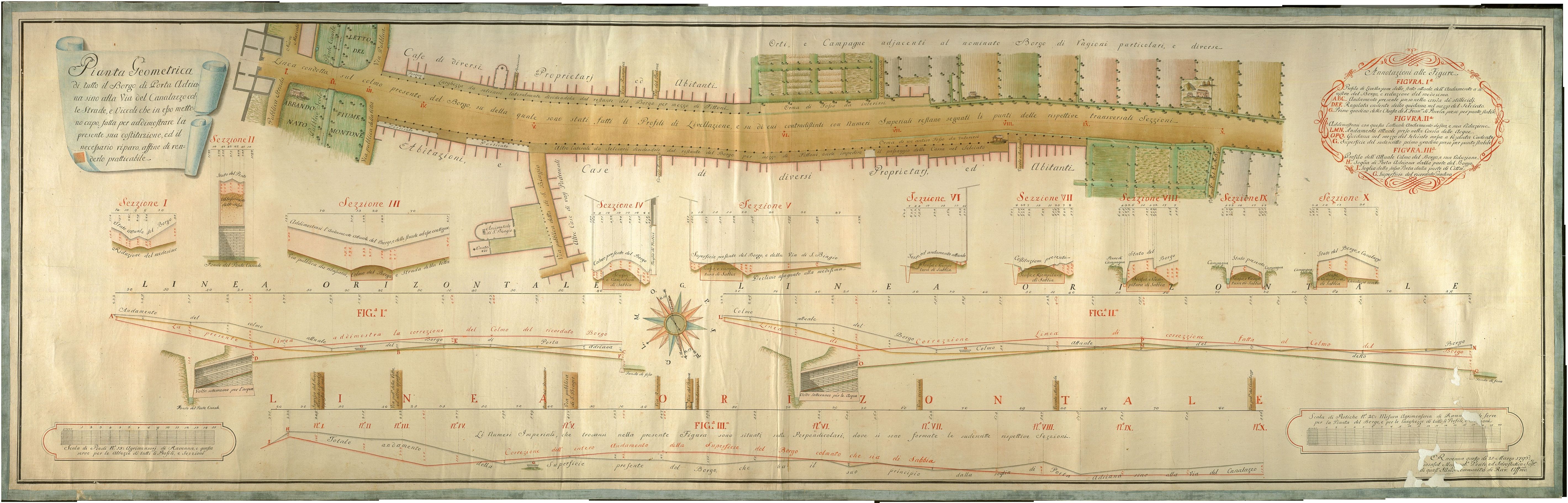 Pianta geometrica di tutto il borgo di Porta Adriana sino alla via del Canalazzo con le strade e i vicoli che in esso mettono capo.