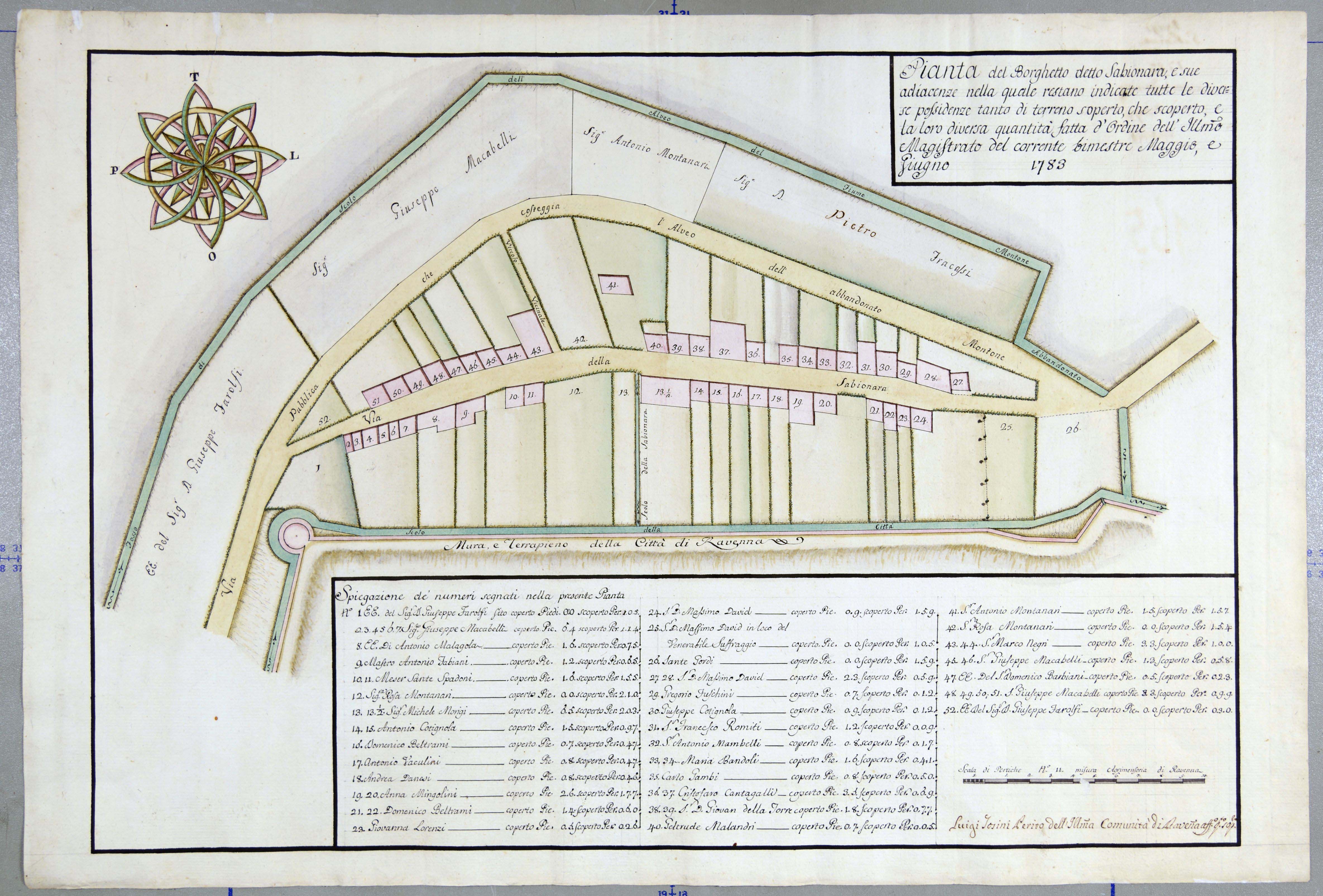 Pianta del Borghetto detto Sabbionara e sue adiacenze e scoli. (con l'elenco dei proprietari).
